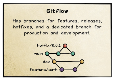 - Gitflow adds structured branches for features, releases, and hotfixes, making it great for projects with scheduled releases and strict deployment cycles, often in enterprise environments.