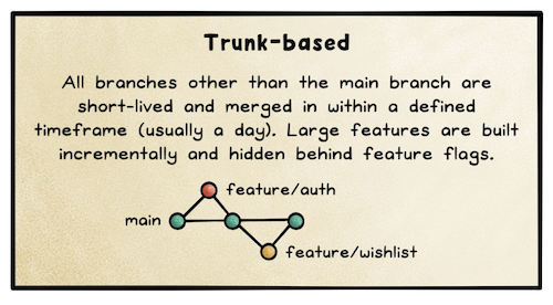 - Trunk-Based Development encourages all changes to be merged into a single branch quickly, fitting fast-moving teams with strong automated testing—especially those practicing continuous integration and delivery, like in DevOps or microservices setups.